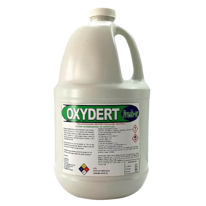 OXYDERT es un detergente formulado con peróxido de hidrógeno, que ofrece una limpieza profunda y desinfección eficaz en una sola aplicación, ideal para mantener ambientes higiénicos y libres de microorganismos.